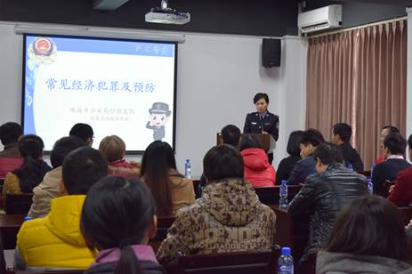 随后,创业者们来到了市公安局经侦支队一楼法制宣教室,听取了一堂专门针对创业者商业操作有关方面开展的“常见经济犯罪及预防”专题讲座。在讲座上,市公安局经济犯罪侦察支队干警根据创业者所遭遇的常见商业诈骗类型,围绕“合同诈骗”、“侵犯知识产权”、“信用卡诈骗”等方面,通过珠海发生的真实案例,结合国家法律法规解读,引入各种有效的防范指引措施,切实提升创业大学生识别商业诈骗行为和防范商业诈骗的能力。