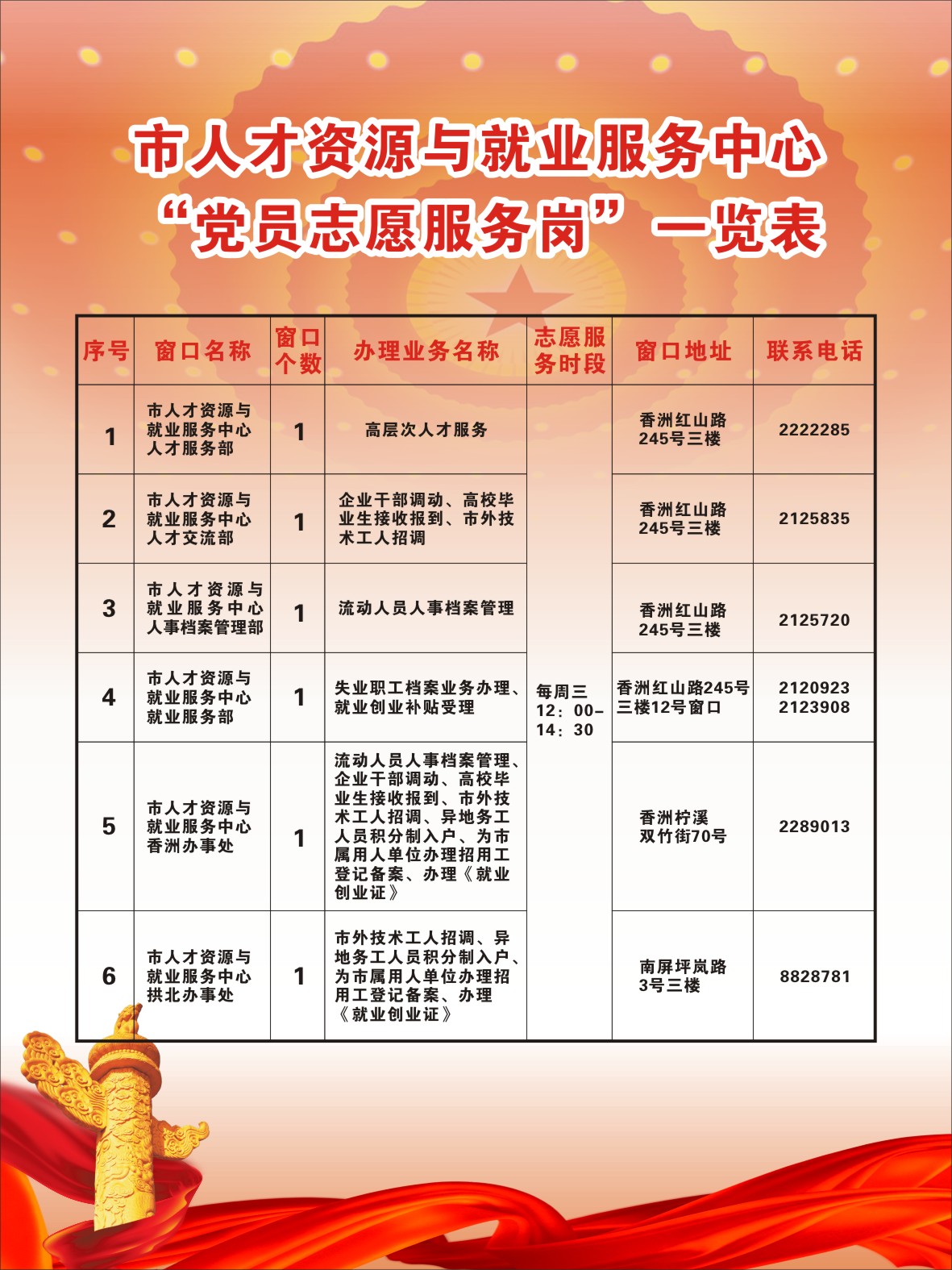 » 市人才资源与就业服务中心“党员志愿服务岗”一览表